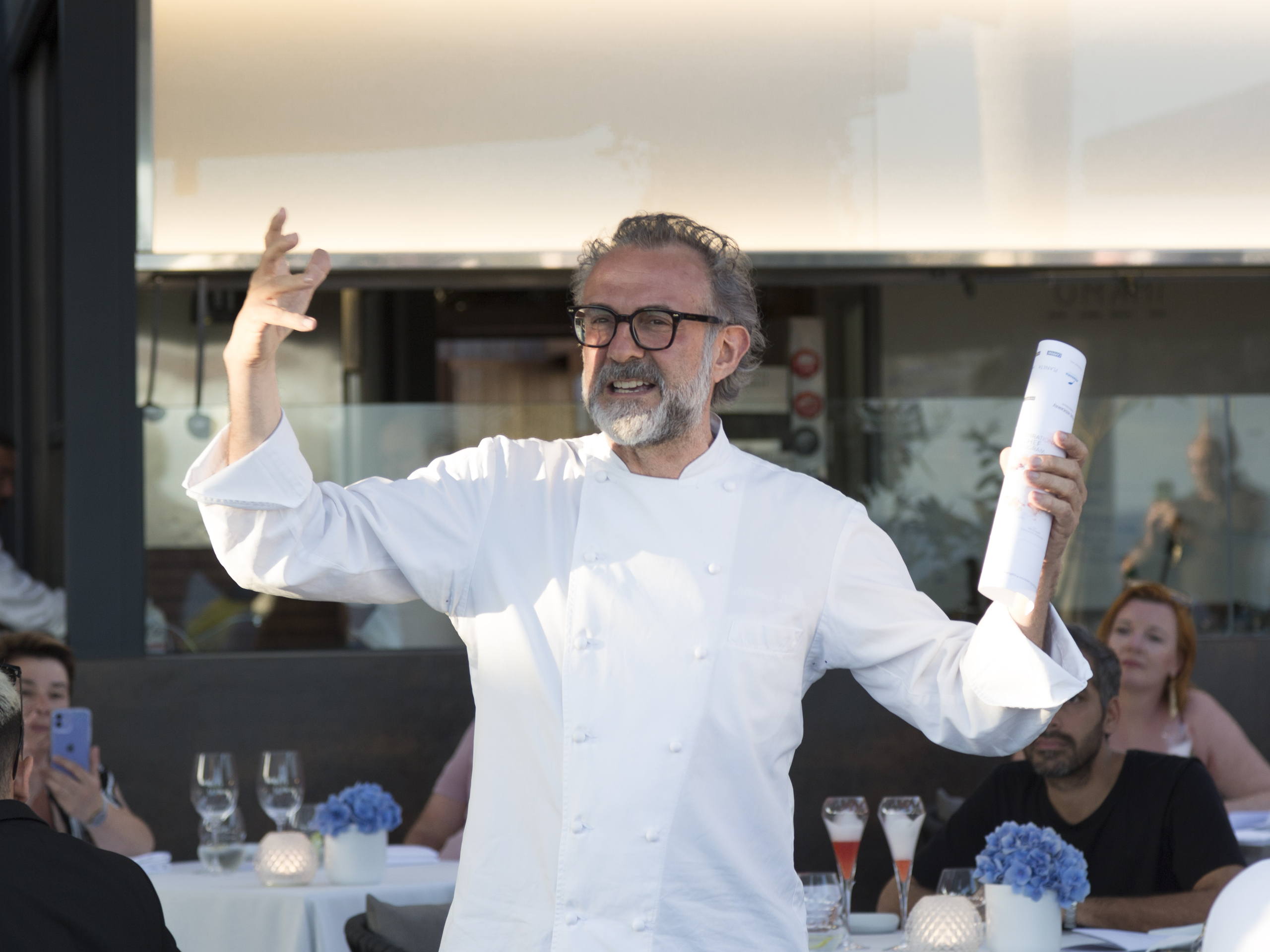 Su restaurante Osteria Francescana es una de las referencias más importantes de la gastronomía a nivel mundial, luciendo 3 estrellas Michelín desde 2012 y ocupando el primer lugar en el listado de los “Worlds 50 Best Restaurants” en los años 2016 y 2018.